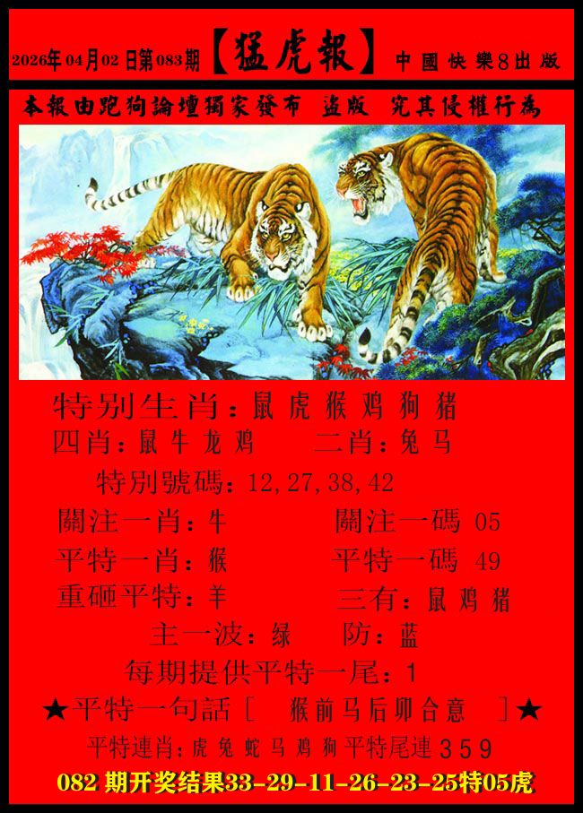 082期家野两肖:野兽+牛鸡开:05虎准